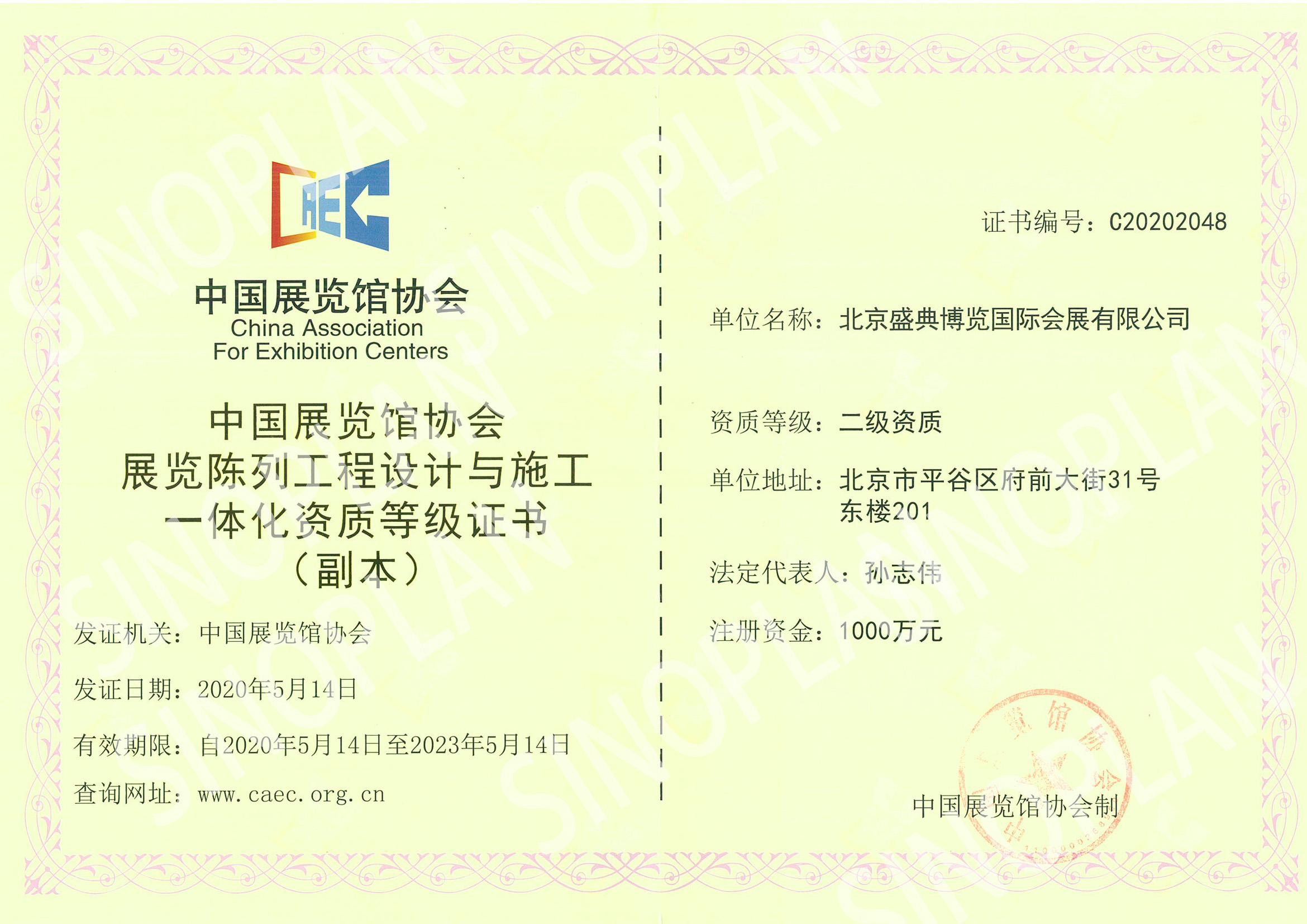 北京盛典博覽國(guó)際會(huì)展有限公司,注冊(cè)資本1000萬(wàn)元,是中國(guó)國(guó)際展覽中心指定的主場(chǎng)運(yùn)營(yíng)設(shè)計(jì)施工單位之一,是中國(guó)展覽設(shè)計(jì)施工一級(jí)資質(zhì)單位之一,建設(shè)部頒發(fā)建筑裝飾二級(jí)資質(zhì),北京市會(huì)展定點(diǎn)采購(gòu)單位,通過(guò)了ISO9001質(zhì)量管理體系認(rèn)證和ISO14001環(huán)境管理體系認(rèn)證。公司是集展會(huì)策劃、策展、主場(chǎng)運(yùn)營(yíng)、搭建、特裝設(shè)計(jì)、展廳規(guī)劃館、博物館空間設(shè)計(jì)和實(shí)施為一體的“一站式”專(zhuān)業(yè)會(huì)展服務(wù)的會(huì)展公司。